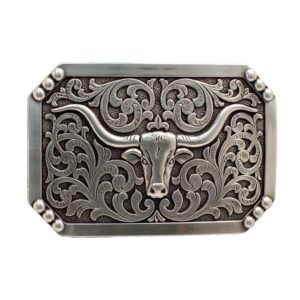 Nocona Men’s Western Bull Skull Buckle with Engraved Inlay (Silver, 2-1/2″ x 3-1/2″)
