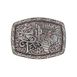 Nocona Men’s Texas Bucking Horse Buckle with Barbed Wire Design (Silver, 3″ x 3-1/2″)