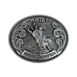 ARIAT Youth Belt Rodeo Champion Buckle with Bull Rider Motif (Antique Silver, 3″ x 2-1/4″)