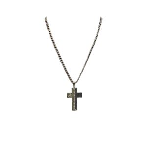 M&F Western Products Silver Strike Men’s Necklace 24In Gunmetal Silver Cross
