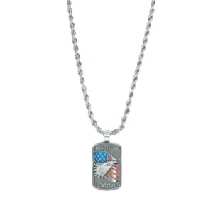TW?STER Men’s American Patriot Eagle Flag Pendant Necklace, Stainless Steel Rope Chain, 24 Inch, Silver