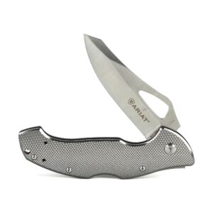 ARIAT Engraved Shield Text Logo Smooth Blade Folding Knife, Grey, 3″ Blade (Medium)