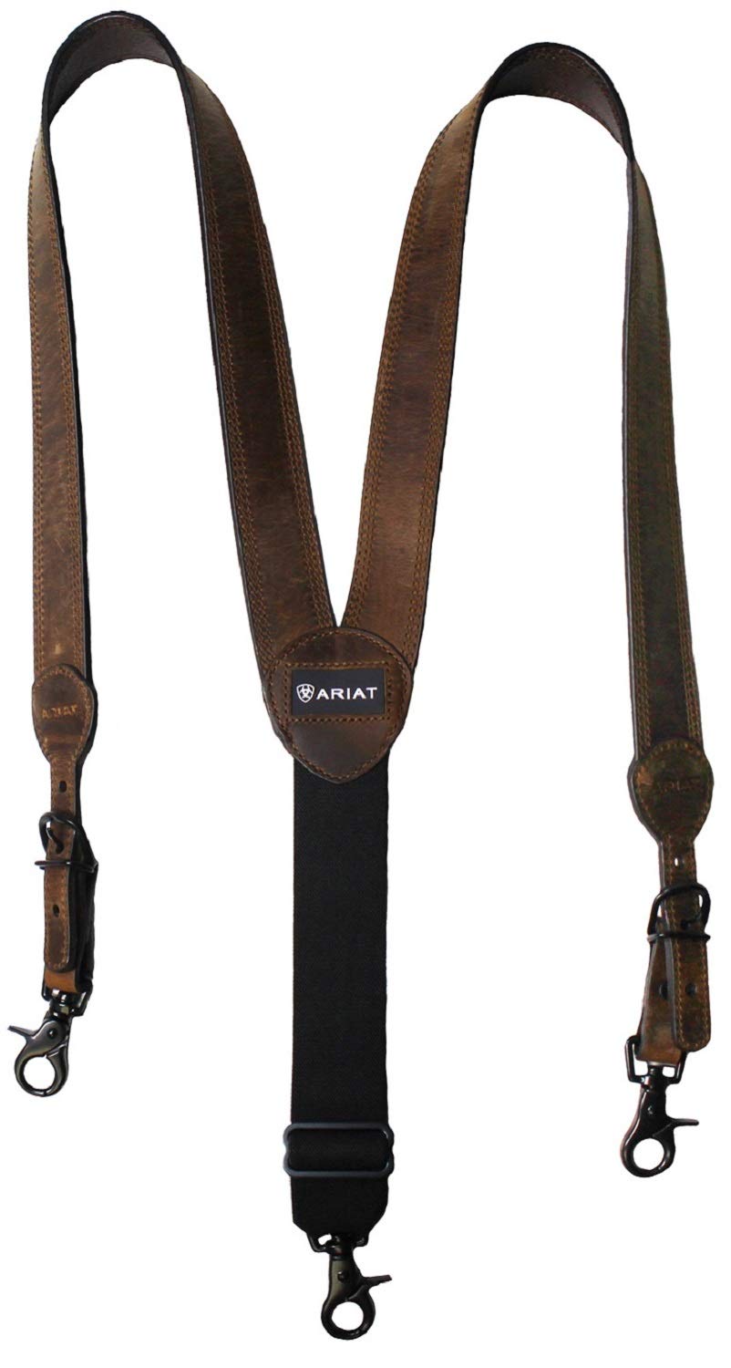 ARIAT Men’s Logo Patch Gallus Distressed Suspenders, Medium Brown, X-Large
