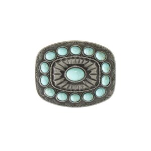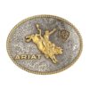 ARIAT Men’s Rectangle Buckle with Raised Vintage Saddle Bronc Motif, Floral Engraved, Rope Edge, Antique Silver Finish, 3-1/2″ x 2-1/2″