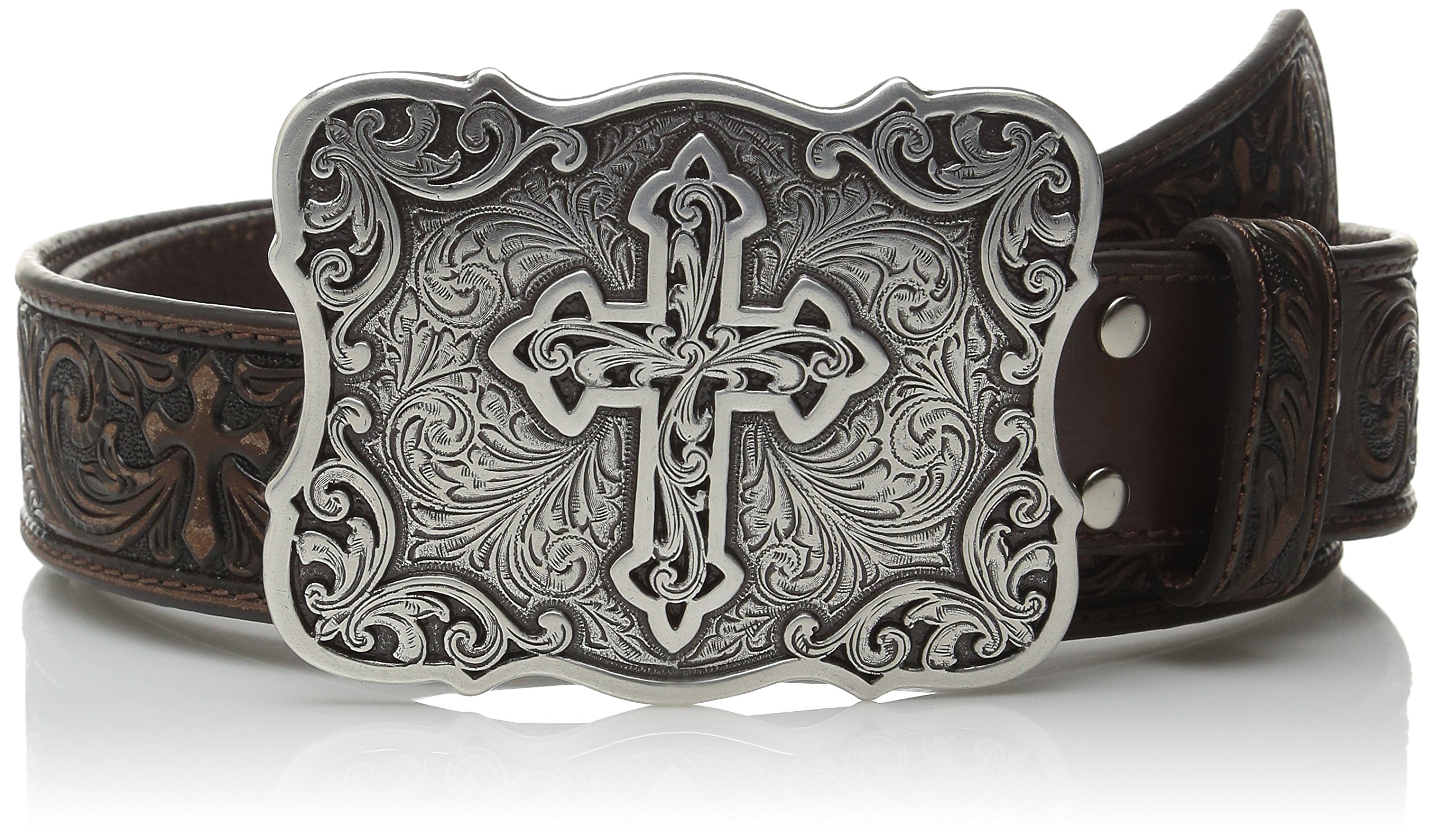 Nocona Belt Co. Women’s Nocona Scroll Embose Cross Buckle Belt Accessory, brown, Small