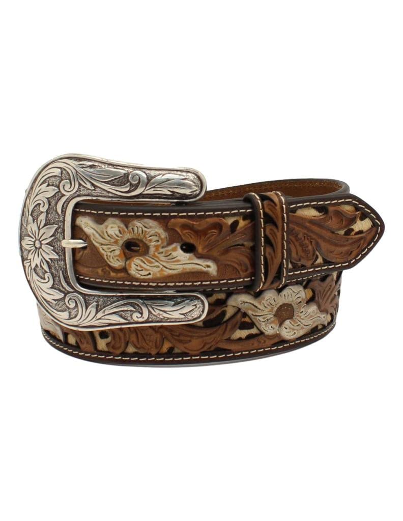 Nocona Women’s Tooled Leopard Print Floral Western Belt Brown Medium