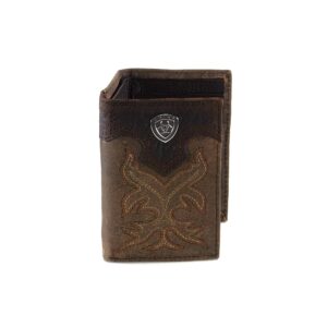 Twisted X XWH1T Men’s Tri-Fold Wallet Tooled Leather Basketweave Brown with Logo Inlay